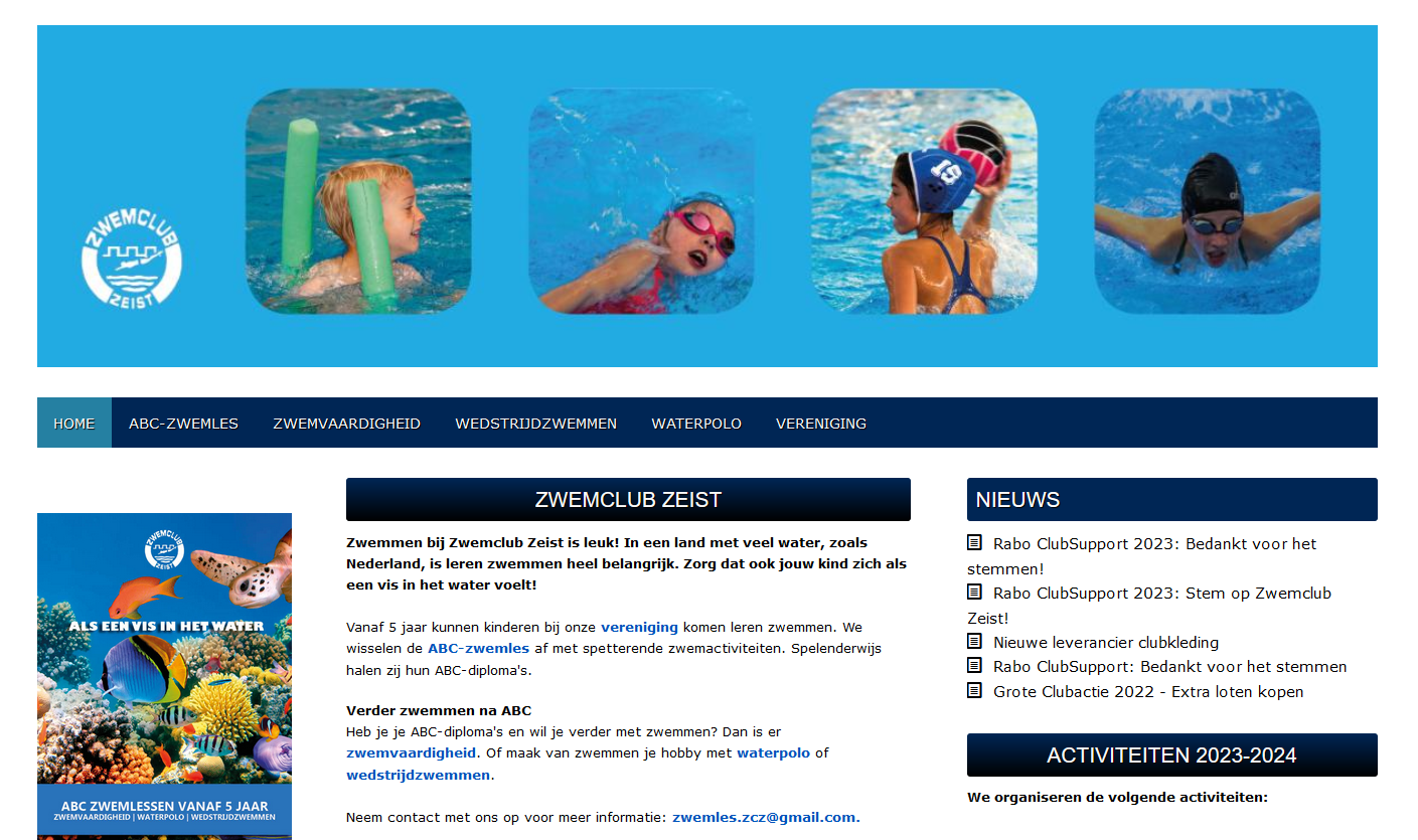 Bij Zwemclub Zeist kun je niet alleen je zwem-ABC halen, je kunt ook je zwemvaardigheid verbeteren of van zwemmen je hobby maken in de vorm van waterpolo en wedstrijdzwemmen. De Zwemclub had een informatieve site en wilde de slag maken naar een meer wervend platform.